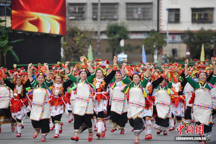 云南金平欢庆建县40周年 各族民众盛装巡游